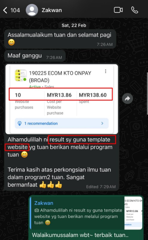 Ni feedback dari mereka yang bukan saya minta, mereka belajar, apply, dan terus dapat result, jual produk digital jer​